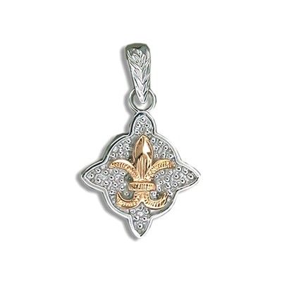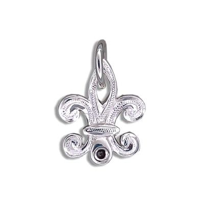 Fine Engraved Sterling Silver Ladies Hawaiian FLEUR DE LIS Shaped with Black CZ Pendant