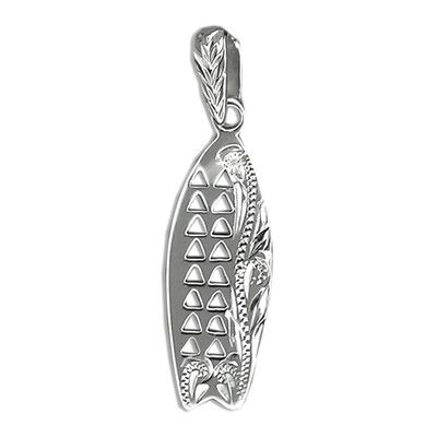Fine Engraved Sterling Silver Men's Cut-In Hawaiian Tattoo with Surfboard Shaped Pendant