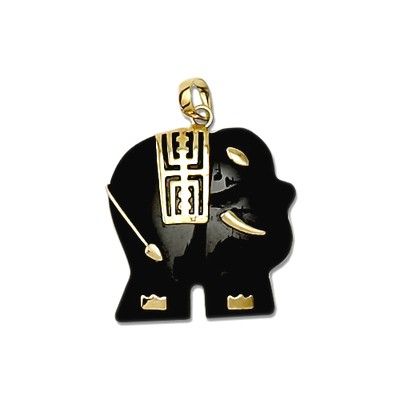 14KT Yellow Gold Elephant Shaped with Black Onyx Pendant