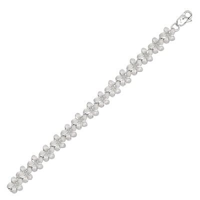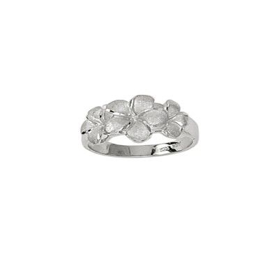 14kt White Gold 8mm Plumeria Blossoms Lever Back Earrings. All three Plumeria flowers are 5/16" in diameter with sand finished and hand carved diamond cut on the edge of each petal. Weight is about 3.5 grams and total length is 1 1/4".