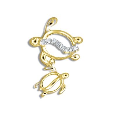 14kt Yellow Gold Diamond Mother and Baby Hawaiian HONU Pendant. The top Hawaiian HONU is set 10 diamonds on it. Total diamond weight is about 0.07 ct. The diamond pendant is high polished to maintain the quality.
