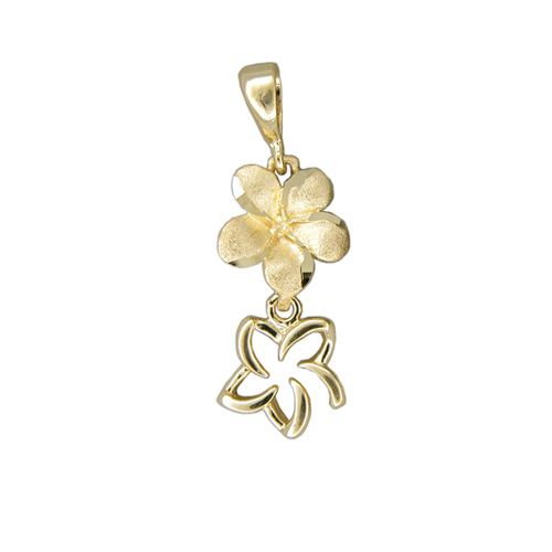 14kt Yellow Gold Double Fancy Plumeria Pendant