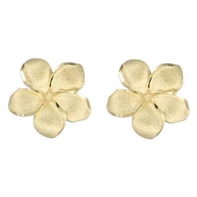 14kt White Gold 18mm Plumeria Pierced Earrings. 3/4" in diameter and weight is about 5 grams. Each petal on the Plumeria flower has sand finished and diamond cut on it.