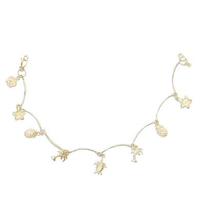 14kt Yellow Gold Hawaiian Mixed Charms Anklet