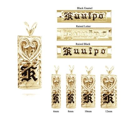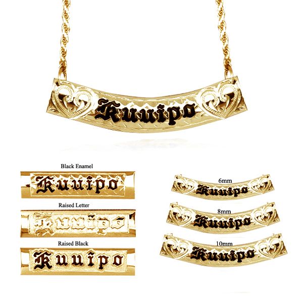 14K Yellow Gold Custom Hawaiian Horizontal Necklace with Heart on both sides of the name. 1.25mm in thickness. You may have up to 10 letters on this traditional necklace.