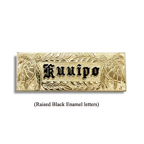 14K Yellow Gold Hawaiian Sea Turtles Custom Rectangle Name Plate