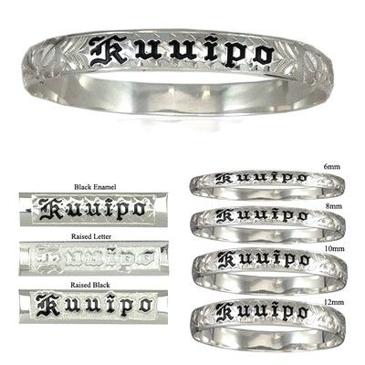 14K White Gold Custom Hawaiian Bangle Bracelet with Turtles. Hand carved in Hawaii with Aloha. The gold bangle is 1.25mm in thickness. We will engrave up to 20 letters on the bracelet.