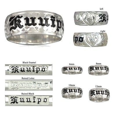 14K White Gold Custom Hawaiian Ring with Heart. Hand carved in Hawaii with Aloha. 1.25mm in thickness. We will engrave up to 10 letters on the ring.