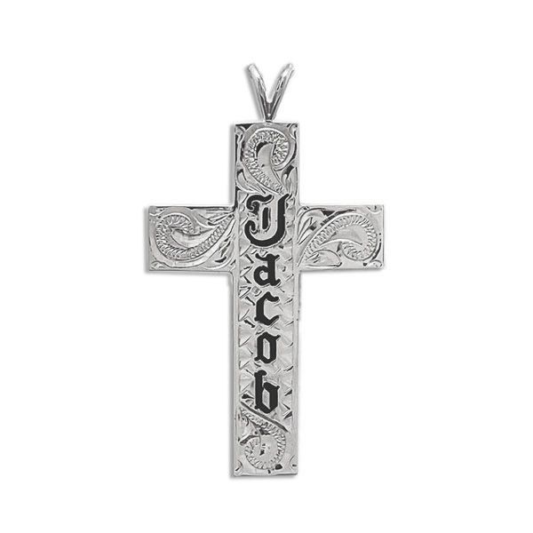 Sterling Silver Custom Hawaiian Cross Pendant with Name