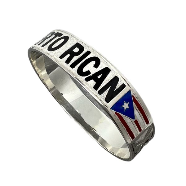Sterling Silver 15MM Hawaiian Plumeria Scroll Designs Bangle with FLAG