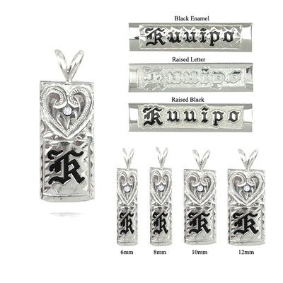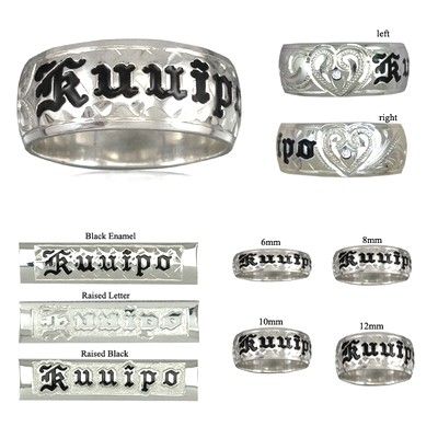 Sterling Silver Custom Hawaiian Ring with Diamond Heart. Hand carved in Hawaii with Aloha. 1.75mm in thickness. There are heart shaped engraved on each and set with 0.03ct diamond in the center of each heart. We can engrave up to 10 letters on the ring.