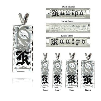 Sterling Silver Single Initial Hawaiian Pendant with Hand Carved Diamond Turtle