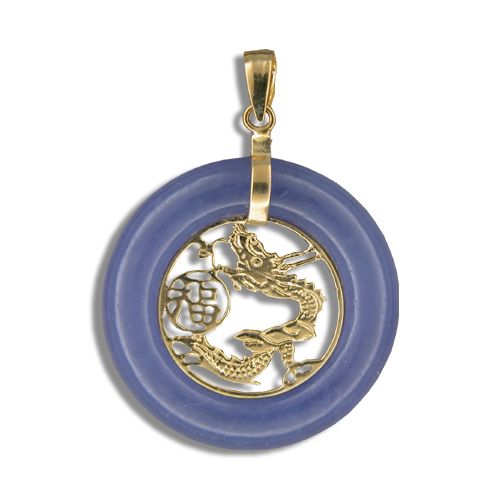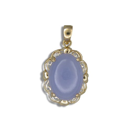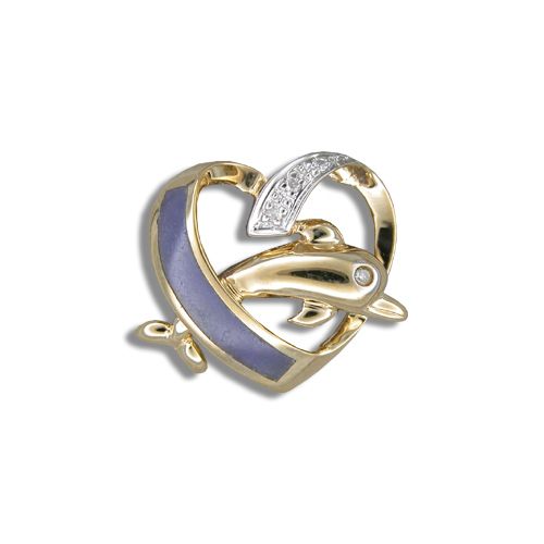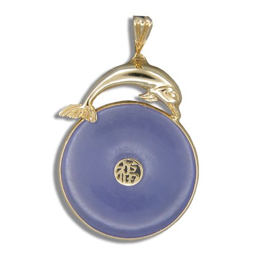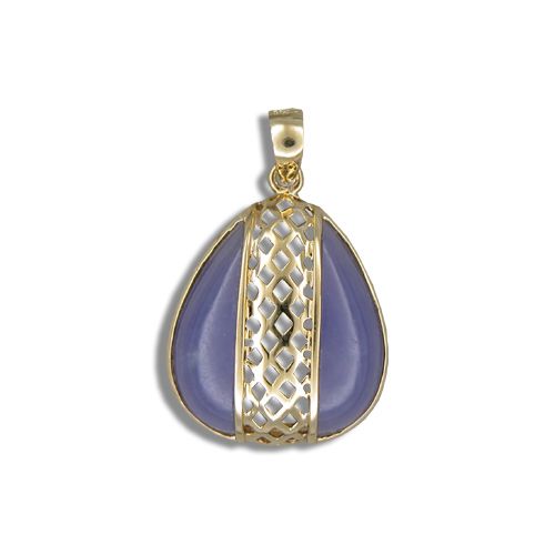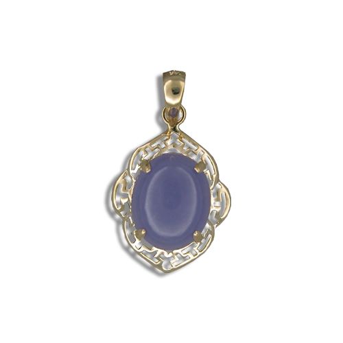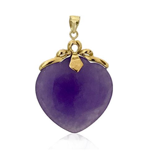 1. 14KT Yellow Gold Cut-In Hearts with Oval Shaped Purple Jade Pendant