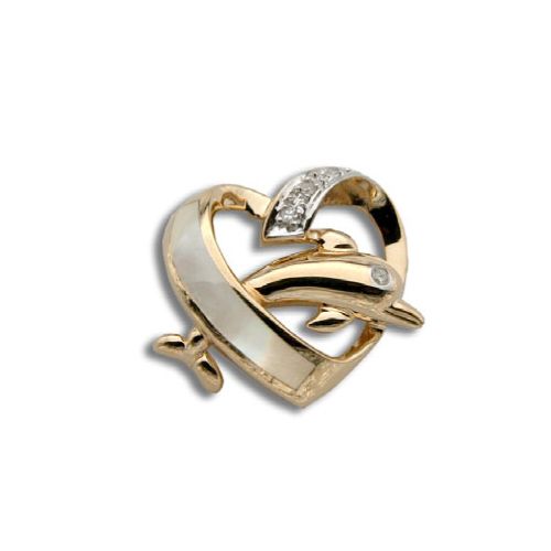 14KT Yellow Gold Green Jade Dolphin in Heart Pendant with Diamond