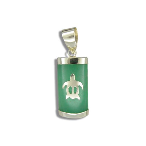 14KT Yellow Gold Hawaiian Honu on Bar Shaped Green Jade Pendant