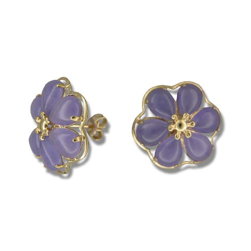 14KT Yellow Gold Six-Petal Plumeria with Purple Jade Earrings