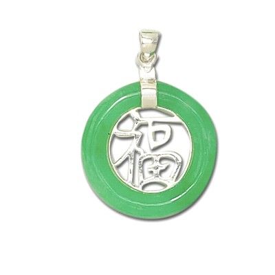 Sterling Silver Chinese Good Fortune Green Jade 20MM Round Shaped Pendant. This lucky pendant is 13/16" in diameter with round shaped purple jade. Total length is 1 1/4".