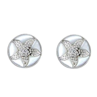 Sterling Silver Hawaiian Sand Dollar White MOP Pierced Earrings