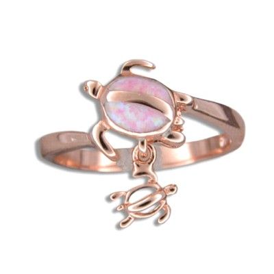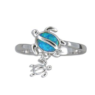 Sterling Silver Hawaiian Mother and Baby Honu White MOP Ring 3/4" by 3/4" with White Mother of Pearl Shell Inlay. This ring is made with sterling silver and finished with Rhodium to avoid tarnishing. Ring size 5 to 10 are available.