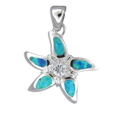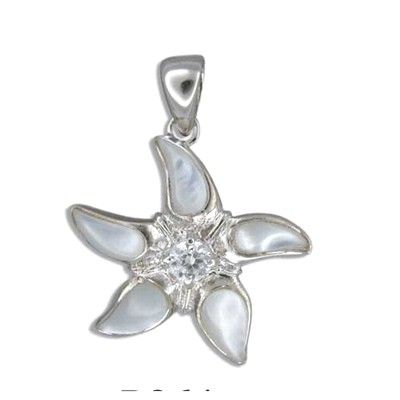 Sterling Silver Hawaiian Starfish White Mother of Pearl Shell Pendant with CZ. 1' by 1' with White MOP Inlay. This pendant is made with sterling silver and finished with Rhodium to avoid tarnishing.