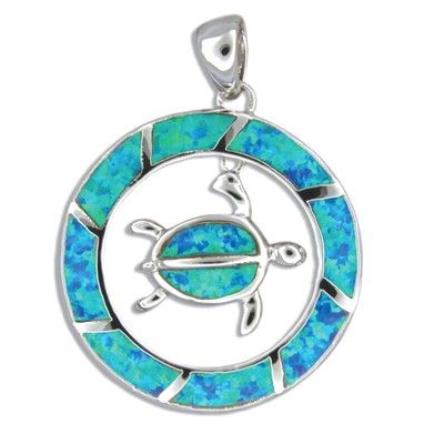 Sterling Silver Hawaiian White MOP Honu in Circle Pendant. The circle is 1" in diameter with a 1/2" by 1/2" Honu dangling in the center of the circle. There are white Mother of Pearl (MOP) shell inlayed on the circle and also the dangling Honu. This pendant is made by sterling silver and finished with Rhodium to avoid tarnishing.