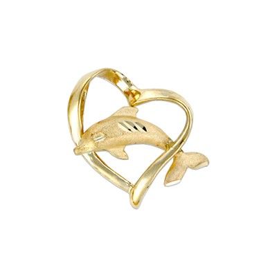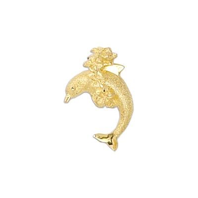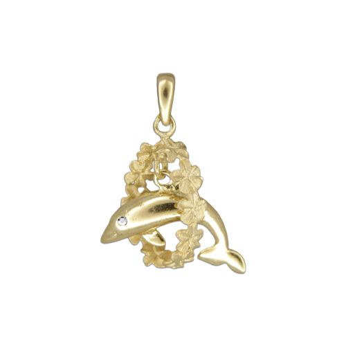 14kt Yellow Gold Jumping Dolphin with Leis Pendant