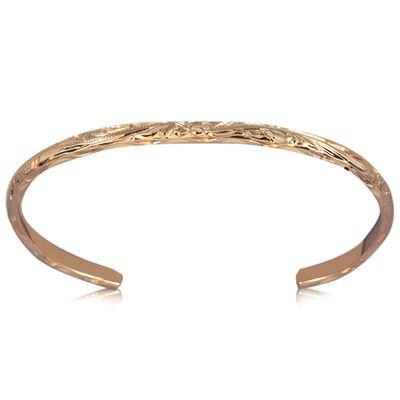 The Heart shaped pendant has hand engraved Hawaiian Plumeria on it and plated with 14kt Rose Gold. 5/8" in width and 9/16 in length. Total length is 3/4"