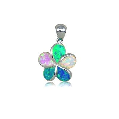 Sterling Silver Hawaiian 12MM Plumeria Pink Opal Pendant (M)