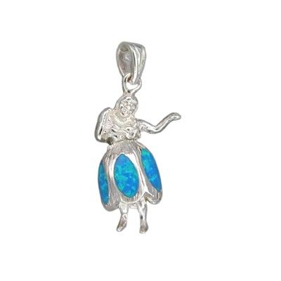 Sterling Silver Hawaiian Blue Opal Hula Girl Pendant (S)
