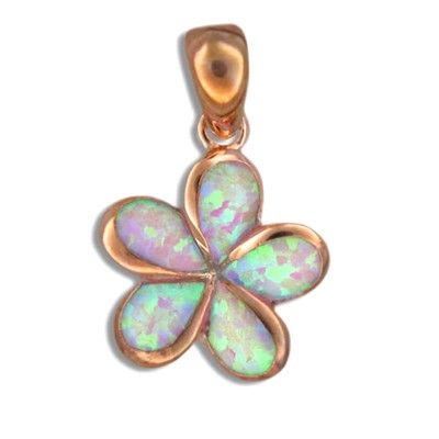 Sterling Silver Pink Opal Hawaiian Pumeria Fish Wire Earrings. Flowers are 1/2" by 1/2" with Pink Opal Inlay. Total length of the earrings included the fish wire is 1 1/4". These earrings are made with sterling silver and finished with matching 14kt Rose Gold to avoid tarnishing.