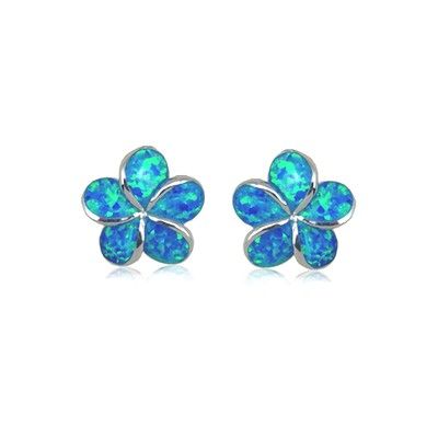Sterling Silver Pink Opal Pumeria Pierced Earrings