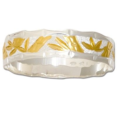 Sterling Silver 12mm Hawaiian Bamboo Design Bangle with Plain Edge. 1/2" in width and average over 23g in weight. There are Hawaiian Bamboo designs all around the bangle and diamond cut on the edges.