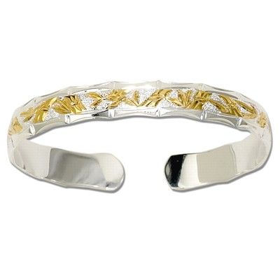 Sterling Silver Two Tone 10mm Hawaiian Bamboo Design Cuff Bangle. One size fit all. The Cuff is 6 inches and the opening is 1.5 inches. Total length is 7.5 inches.