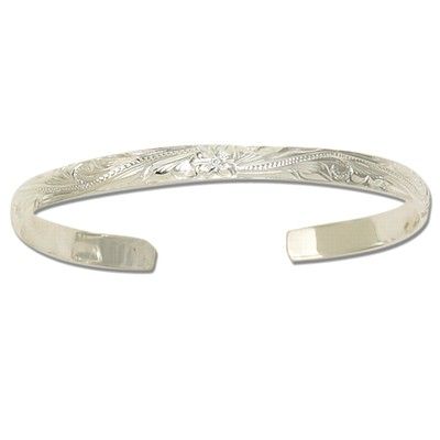 Sterling Silver 6mm Hawaiian with Plain Edge Cuff Bangle. One size fit all. The Cuff is 6 inches and the opening is 1.5 inches. Total length is 7.5 inches.