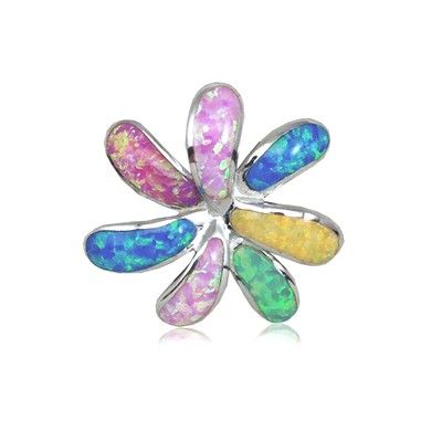 The Tiare flower is 1" in diameter and has 7 pcs hand polished inlay rainbow opal on the petals. Tiare flower is the most popular flower for Hula dancers. In addition, this pendant is finished with Rhodium to avoid tarnishing.