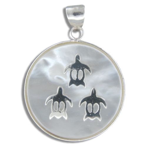 Sterling Silver Hawaiian Honu on Round Shaped MOP (Mother of Pearl Shell) Pendant