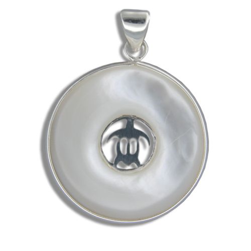 Sterling Silver Hawaiian Honu with Round Shaped MOP (Mother of Pearl Shell) Pendant