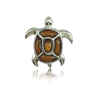 Sterling Silver Hawaiian Koa Wood HONU Pendant (M). 7/8' in diameter and 1 1/8' in total length. This Honu with Hawaiian Koa Wood Inlay pendant is made with sterling silver and finished with Rhodium to avoid tarnishing. Always appropriate and gorgeous, this pendant is a timeless classic, and it belongs in every jewelry wardrobe.