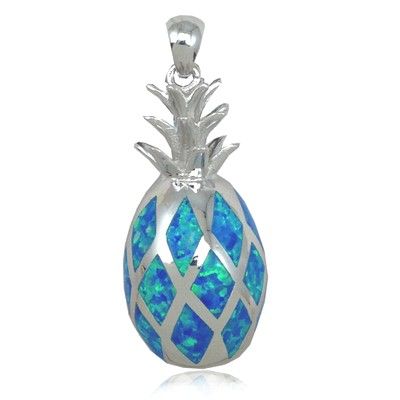 Sterling Silver Hawaiian Pineapple Shaped Rainbow Opal Pendant (S). 1/2" in width, 1 1/4" in length and total length is 1 3/8" with Rainbow Opal Inlay. This pendant is Rhodium finished to avoid tarnishing.