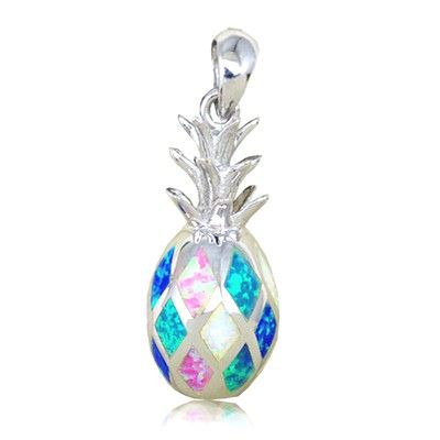 Sterling Silver Hawaiian Small Pineapple Shaped Rainbow Opal Pendant