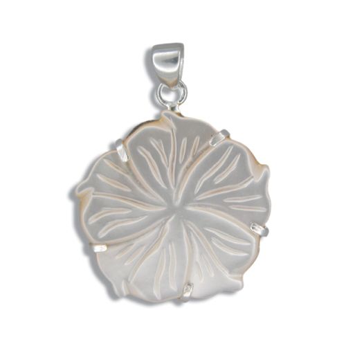 Sterling Silver Hawaiian Plumeria 25mm MOP (Mother of Pearl Shell) Pendant