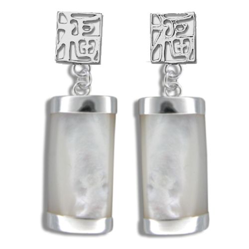 Sterling Silver "Lucky Fortune" with Long Bar Shaped MOP (Mother of Pearl Shell) Earrings