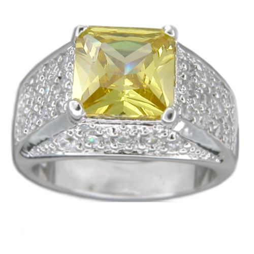Sterling Silver Square Cut Citrine Yellow and Clear CZ Symmetrical Ring