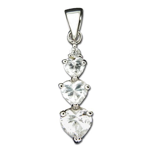 Sterling Silver Triple Heart Shaped Clear CZ Drop Pendant