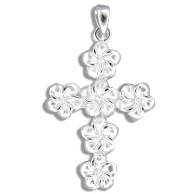 Sterling Silver White Sand Hawaiian Plumeria and Cross Long Chain Earrings. 5/8' in width and 7/8' in length. Each Cross is finished with white sand and high polished to avoid tarnishing. Always appropriate and gorgeous, these earrings are a timeless classic, and them belongs in every jewelry wardrobe.