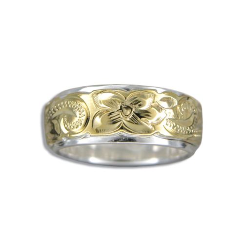 Sterling Silver Two Tone Hawaiian Plumeria and Scroll Vertical Pendant. This pendant is 1" by 1/4" and weight about 5.3 grams. In addition, there are Hawaiian Plumeria and Scroll designs carved in the center of the pendant and finished with 14kt Yellow Gold. This pendant is made with sterling silver and high polished to avoid tarnishing.